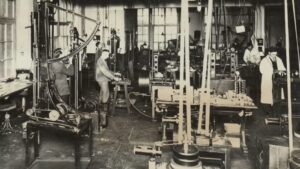 自転車の車輪を動力にした革新的な工房は、やがて「ダスラー兄弟商会」として成長し1936年のベルリンオリンピックでは黒人選手ジェシー・オーエンスが彼らのシューズで4つの金メダルを獲得、世界的な注目を集めた。