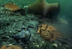 ダイバーたちは金貨の入った壺、ラピスラズリで飾られた儀式用の仮面、そしてエジプトとギリシャの文様が入り混じった精巧な銀器を発見した。