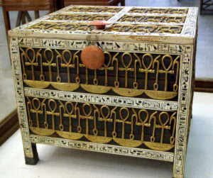 その他至宝の数々 玉座、チャリオット(戦車)カノポス容器(内臓を収めた器)宝飾品など、目を見張るような品々がずらりと並びます。これまで地下倉庫で眠っていた未公開の品も数多く含まれます。