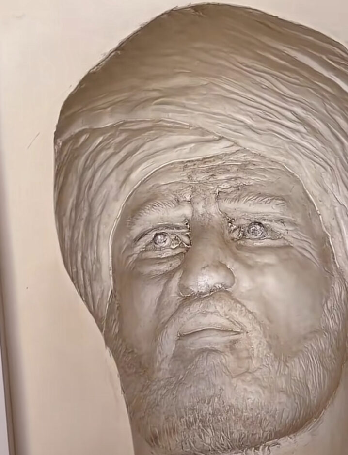 この肖像は、アル・ジャザリの姿を刻んだ金属製レリーフであり複雑な幾何学的刻みと光学技術を用いて観測者の視線を追うような視覚効果を生み出す。