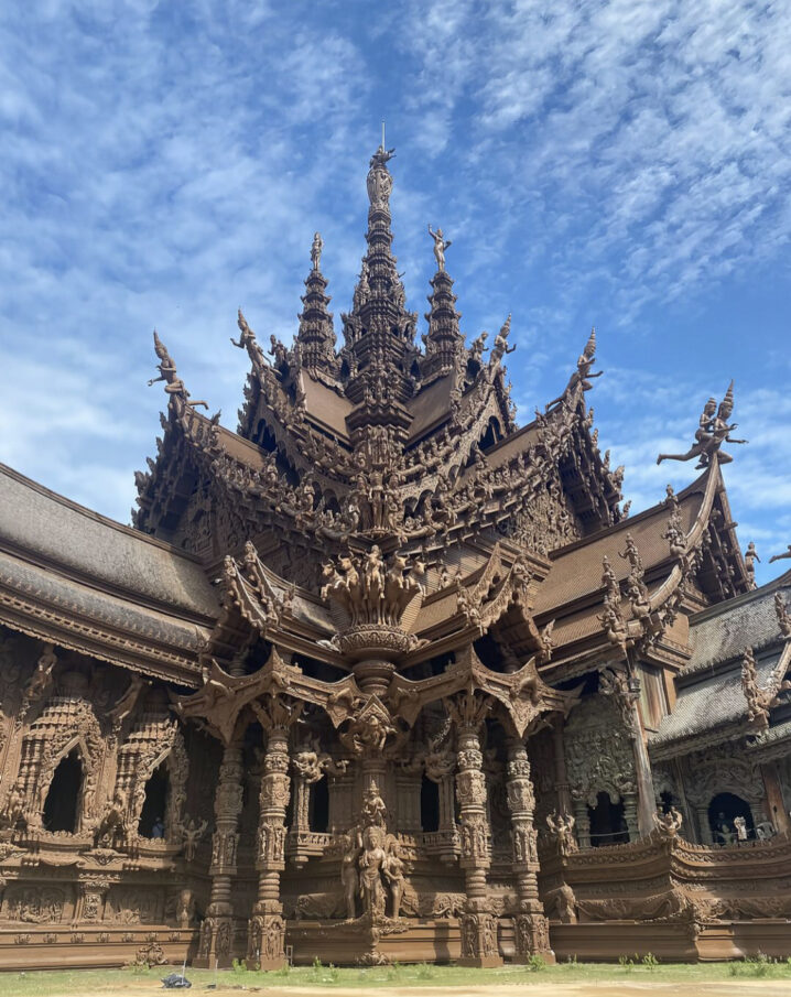 海風がチーク材の彫刻を侵食するパタヤの浜辺に人類が自らの魂の深淵を木材に刻み込んだ奇跡が屹立している。サンクチュアリー・オブ・トゥルース その名は「真理の聖殿」と訳されるが、真実とはこの建築がそもそも「聖殿」という完成形を拒絶していることにある。1981年の鍬入れから今日に至るまで、この構造物は決して完成することなく、むしろ「未完であること」そのものが創設者レック・ピアシリーワットの投げかけた哲学的投石器なのである。
